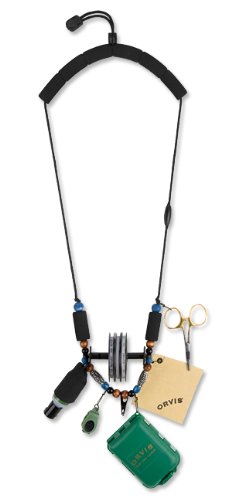 An ergonomic fishing neck lanyard crafted in the USA. THE GUIDE: Adjustable foam neck strap with break away feature for safety. Tubular foam fly patch on both left and right side. Bottom clip to secure to shirt to prevent lanyard swing. Horizontal tippet carrier, floatant caddy, fly drying chamois, four accessory snaps for your tools. Lanyard may come in black, blue, green, or natural beads. Fully-loaded comes with Hy-Flote gel floatant, 4x, 5x, 6x Super Strong Tippet, mini nipper, micro scissor forceps, fly box.